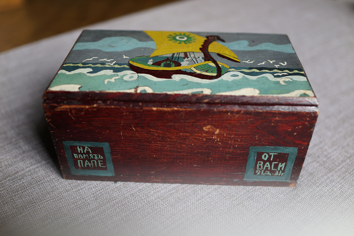 - A wooden casket made by Stalin’s son Vasili as a present to his father. In one corner there is an inscription “For memory to Dad” and in the other corner – “From Vasya. 21.12.31.”